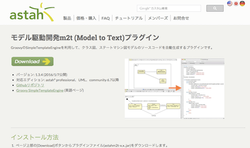 この「モデル駆動開発m2tプラグイン」は、製品サイトよりダウンロードできます。