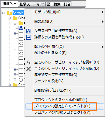 - 構造ツリー上のグラデーションを表示したいパッケージを右クリック後、[プロパティの設定(プロジェクト)]を選択します