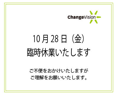 臨時休業のお知らせ 投稿者: ume 投稿日: 9月 16, 20169月 16, 2016 announcement 誠に勝手ながら、10月28日(金)を臨時休業とさせていただきます。 ご不便をおかけいたしますが、ご理解とご協力いただけますようお願い申し上げます。 ・各種問合せについて 問合せフォーム、メールにて随時受付けております。 ご返信は、10月31日(月)より順次対応いたします。 ・ライセンスの登録・発行について メンバーズサイトよりライセンス登録、ライセンスキーの発行が可能です。 ぜひシェアしてください Facebook で共有するにはクリックしてください (新しいウィンドウで開きます) Facebook クリックして X で共有 (新しいウィンドウで開きます) X いいね 読み込み中… 関連