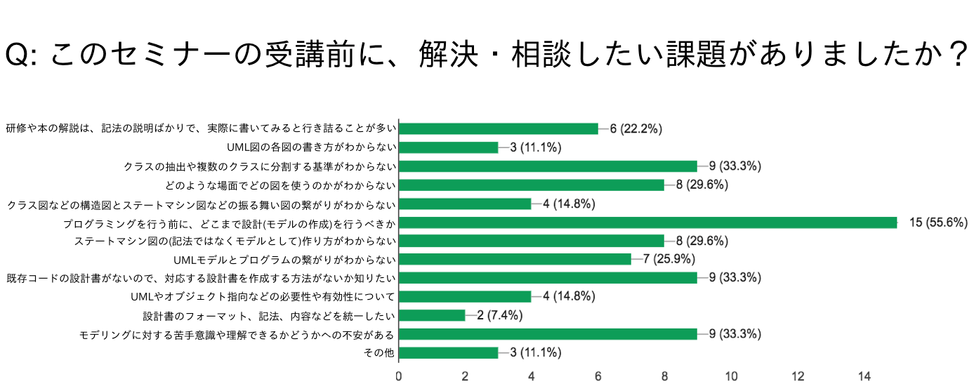 「一緒に作業したメンバーにも恵まれました。社内でもっとUMLを普及させたいのだが上手く進んでいないのですが、同席した方も同じような経験をしておりお互い励まし合いました。」(組込み系ソフトウェア設計者様)