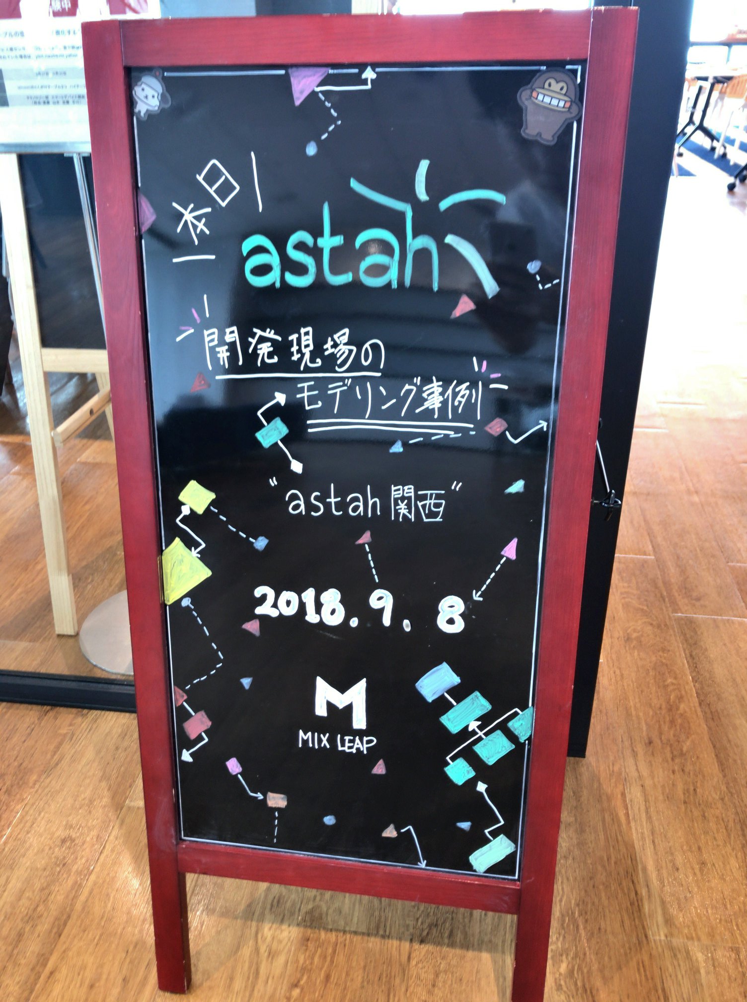 41215823_2131129480313500_5304232315038203904_o 9月 12, 2018 第2回astah関西勉強会(2018/9/8)のスライドが公開されました 1504 × 2016 ウェルカムボード