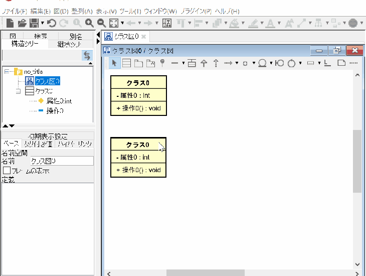 構造ツリーからドラッグアンドドロップすれば、また図上にクラス0を作成することもできます。