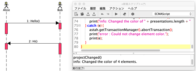 ※スクリプトエディタは、astah* pro・UML7.2で追加された機能ですが、これより古いバージョンや、astah* SysML・GSNをお使いの方は、プラグインとしてインストールする事で利用が可能になります。