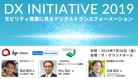 7月26日(金)に、豪華講師をお迎えして「DX INITIATIVE 2019 〜モビリティ産業に見るデジタルトランスフォーメーション〜」と題したシンポジウムが開かれます。弊社チェンジビジョンも協賛させていただいています。