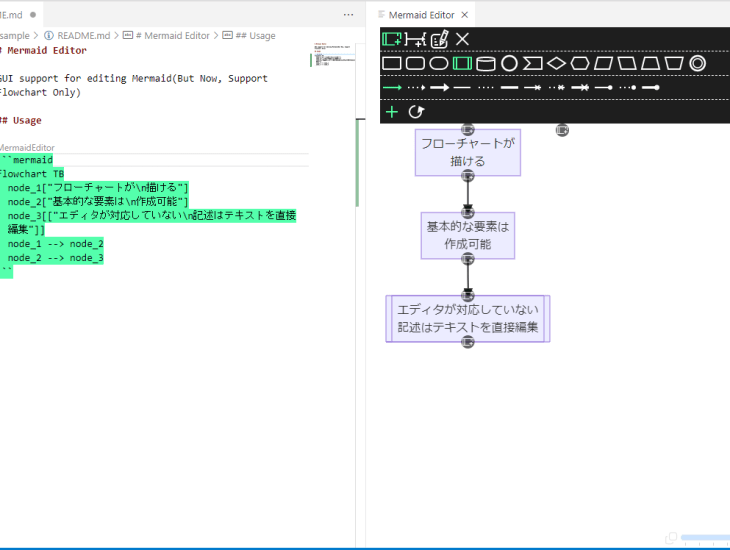 - テキスト(mermaid)形式の記述から、グラフィカルに表示・編集できるエディタビューを表示