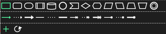 上の段から、ノード形状の選択、リンク形状の選択、追加モード/変更モードの選択