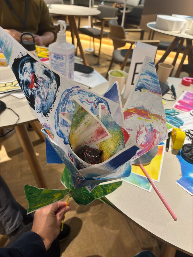 作品完成後の共有タイムでは、自分の作品のイメージを共有したり、制作過程での気づきや感想を語り合いました。