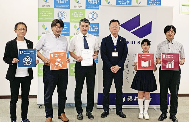 2024年8月30日(金)、「ふくぎんSDGs私募債」寄贈式に、福井高専様と掲げたSDGs目標: