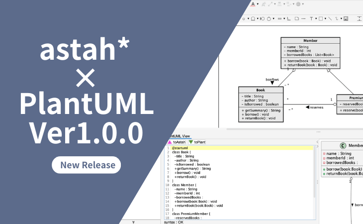 テキストで手軽にUML図を描けるPlantUMLと、図だけでなく設計モデルも扱えるモデリングツールastah*をつなぐプラグインを、「バージョン1.0.0」としてアップデートしました!