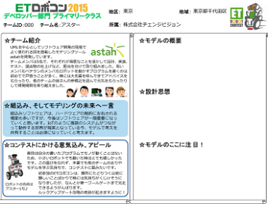 試走会で他チームの走りにノックアウトされたチームの皆さん、提出モデルのの仕上げもそろそろでしょうか。ETロボコン提出モデルを魅せるコツを集めた「りりぃメソッド」の二つ目は、レイアウトのテクニックです。レイアウトを工夫することで、伝えたいことを見せたい順序で読んでもらえる提出モデルを作りましょう。