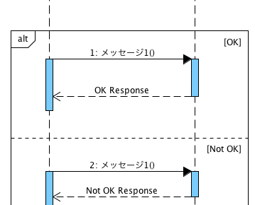 シーケンス図のReplyメッセージを複数作成する場合は、複合フラグメントを使用して描画してください。